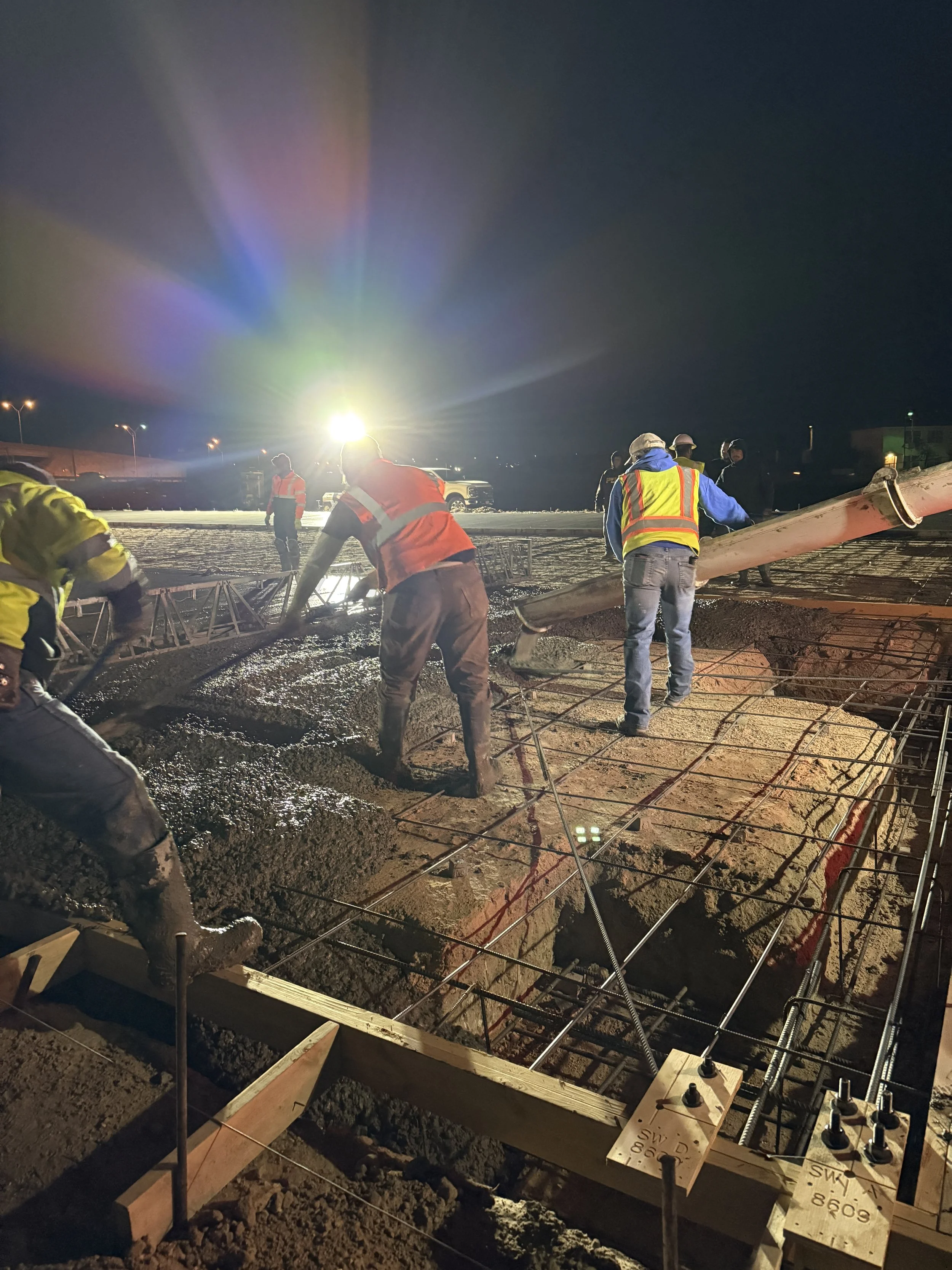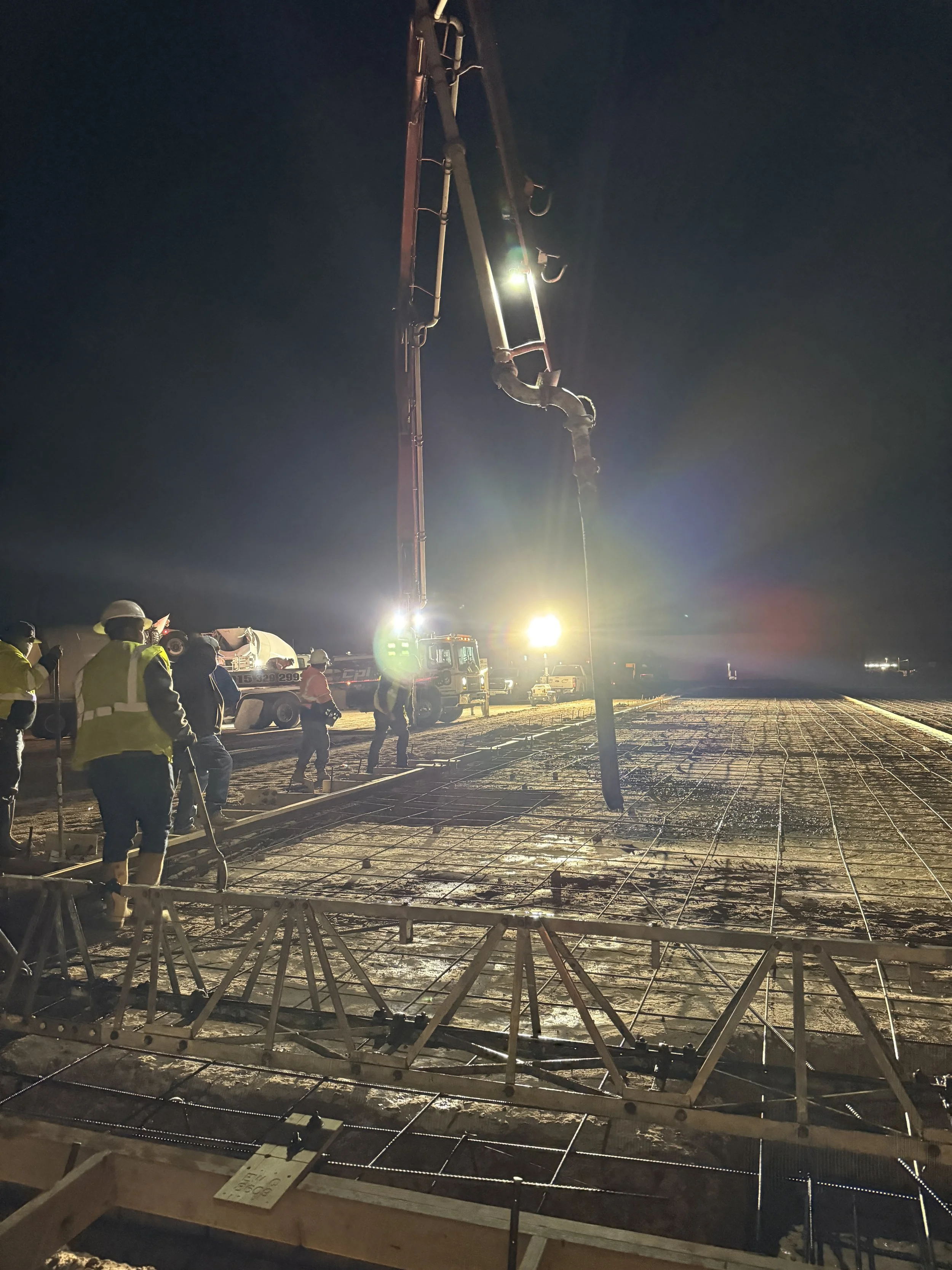 Our scope included all concrete slab work, completed in three separate pours that ran from 2 AM until 5 PM to meet structural and schedule requirements.